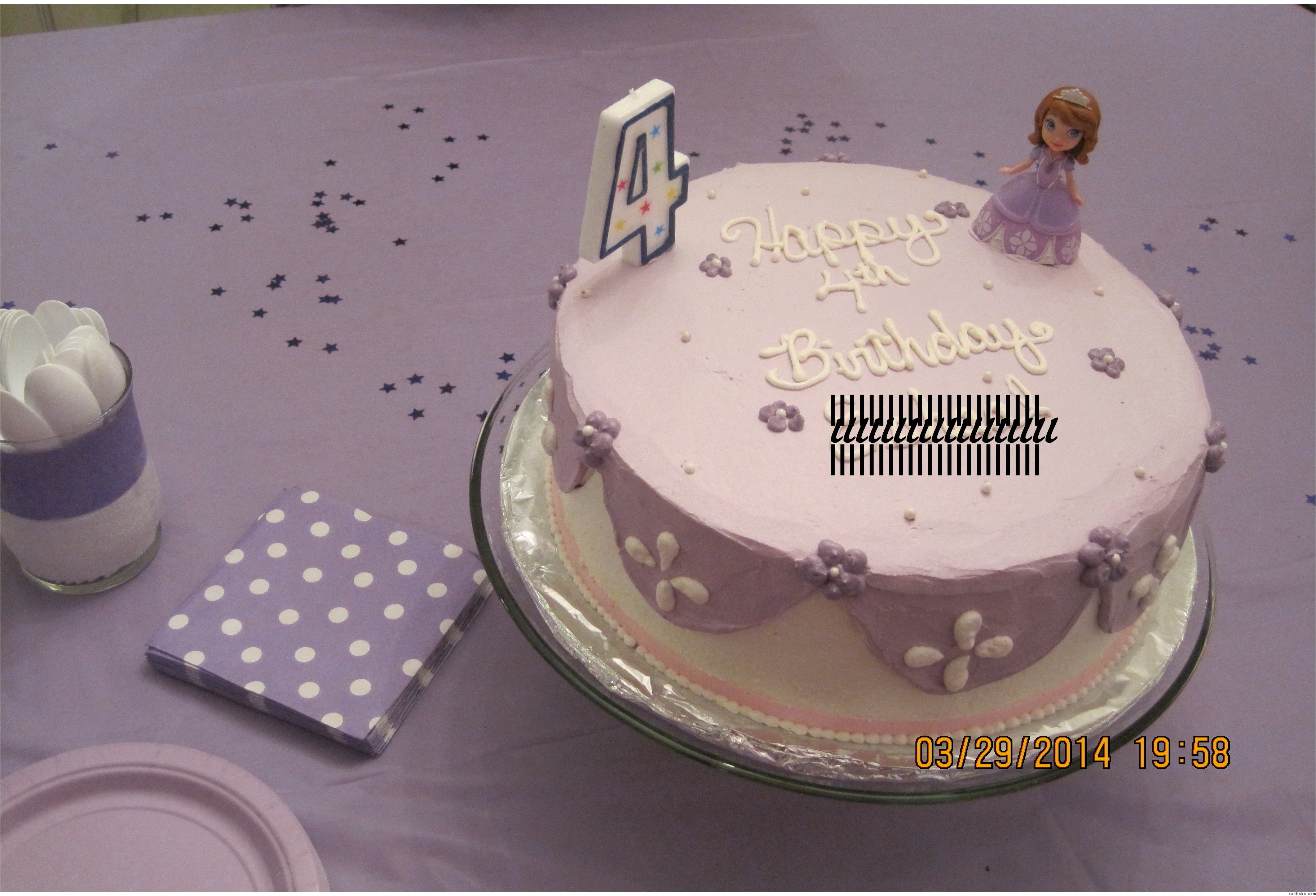 My daughter wanted a Sophia themed 4th bday party earlier this year.I am not too fond of these licensed characters but it was what she wanted.I incorporated the lilac and white colors in decor and her dress (she had a dress in that shade) and other stuff,instead of the character itself.I had the cake made by a local neighborhood cake shop and she doesn’t work with fondant.I believe it was a picture of a fondant cake that I gave her and she used regular frosting to make it.It was a double layer marble cake with raspberry mousse.I bought the Sophia doll myself at a grocery store.