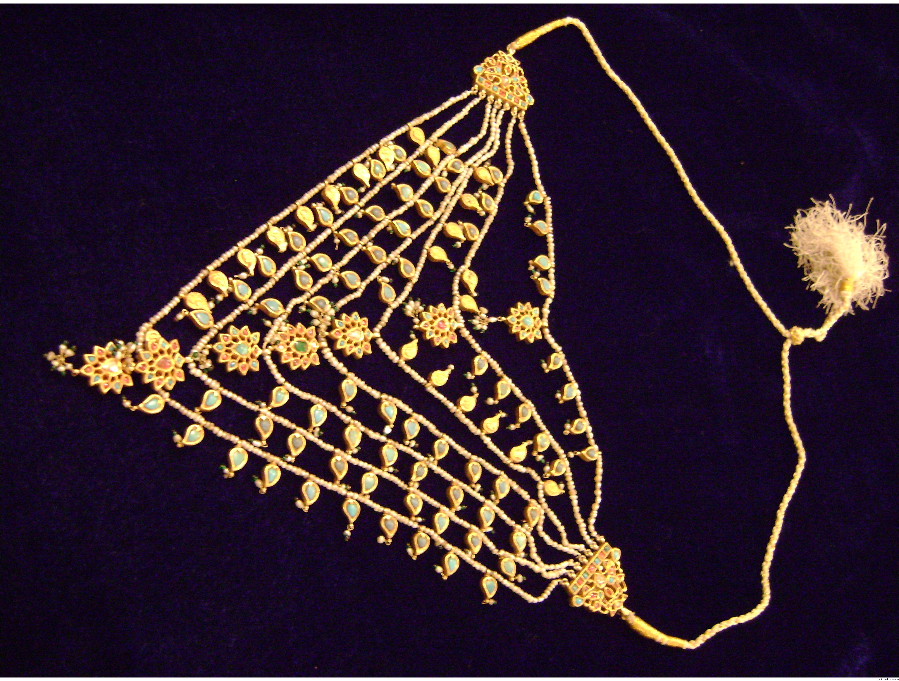 U know, it looks liek a paanch-lara..but there's 3 rows of smaller chains up top..im not sure if they're attached or not. necklace is a regular necklace.