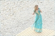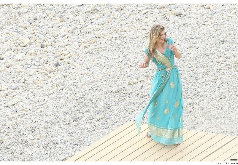 I'd wear a chiffon sari.. maybe baby blue or a light pastel colour..