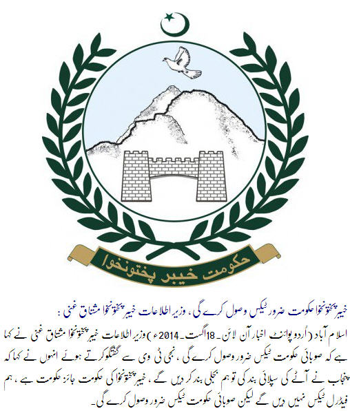 مزید پڑھئے : خیبر پختون خوا Ø*کومت ٹیکس وصولی جاری رکھے گی، وزیراطلاعات مشتاق غنی – ایکسپریسس اردو](خیبر پختون خوا حکومت ٹیکس وصولی جاری رکھے گی وزیراطلاعات مشتاق غنی - ایکسپریس اردو)