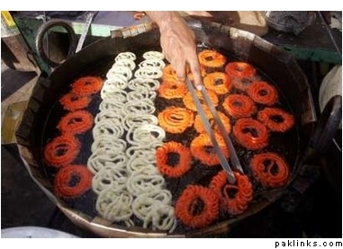 A street vendor prepares sweets for breaking fast during the Muslim fasting month of Ramadan in Karachi September 27, 2006. REUTERS/Athar Hussain (PAKISTAN)