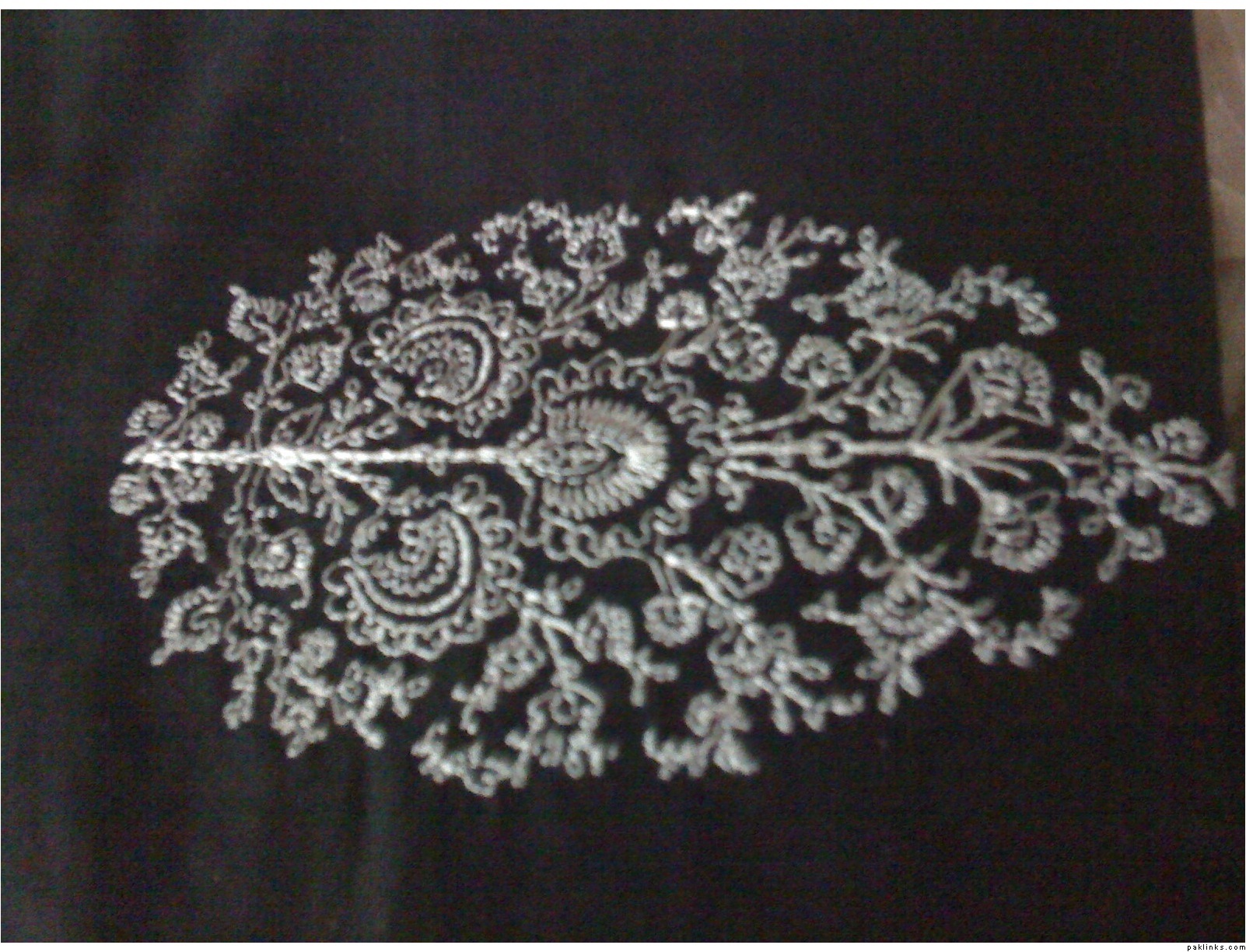 Black and white with satin strip, SS, below is the embroidery motif all over the shirt.