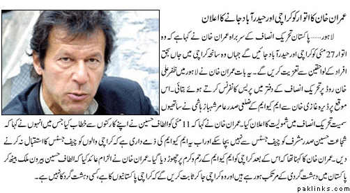 Imran has my respect for being the only politician for doing *something *about the 12 may carnage. Rest of the political gang is upto their usual stuff..making statements and going home. Imran on the other hand is going ahead with a lawsuit, taking the MQM head on. Did u read his statement on BBC? After MQM protested against Imran for calling Altaf bhai a terrorist and chalking up Karachi walls, Imran who was earlier going to only visit Hyderabad, decided to add Karachi to his tour and said..if they think they can cow me down with these tactics, think again. He needs our support.