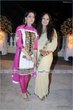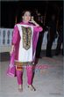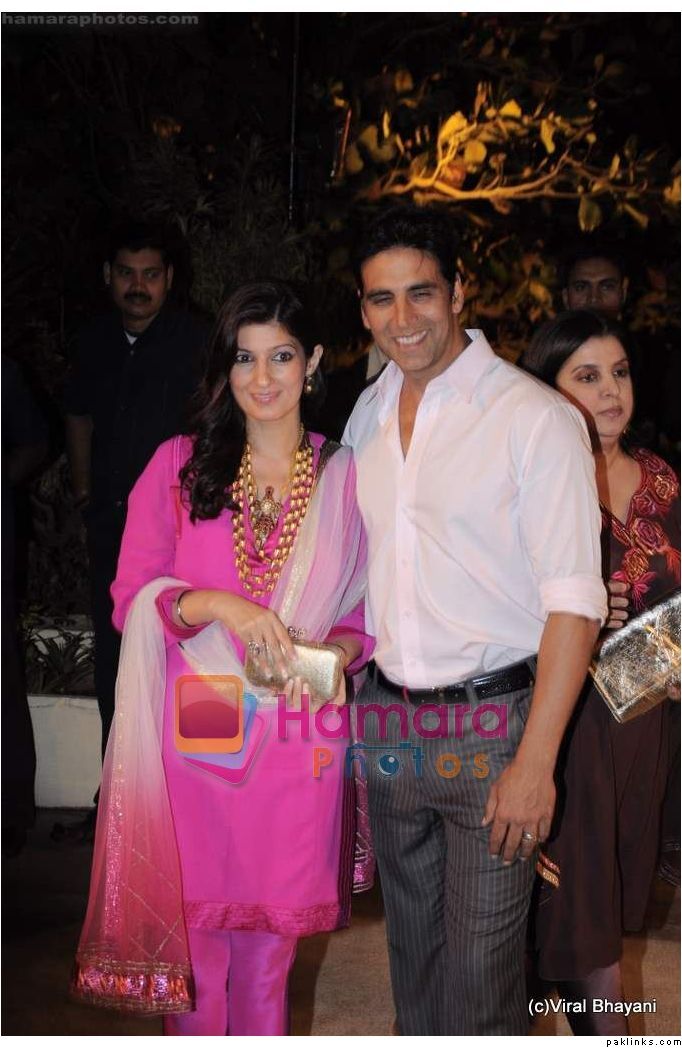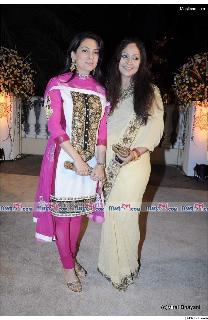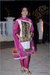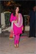 Twinkle Khanna in a deep pink outfit, accessorised with a gold neck-piece.