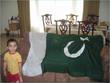 Nice setting of your home too. Hardwood floors, contrast with dark brown chairs, light and dark-colored table mat, brown side table and such a cute boy.