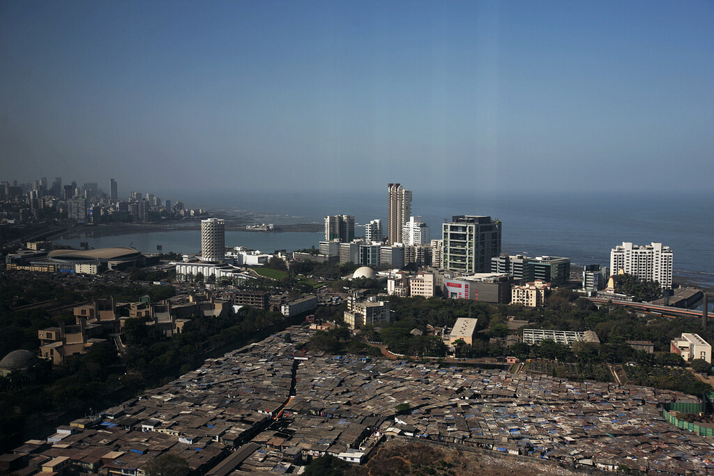 One of the Slums of the Mumbai are visible in the foreground.