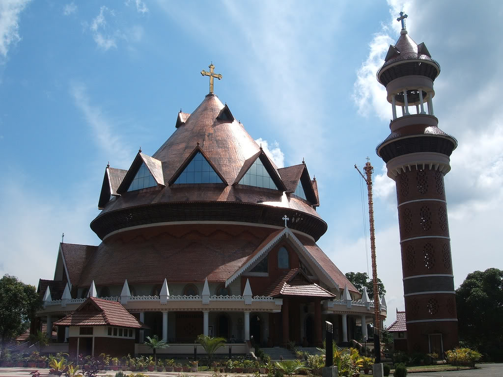A Cathedral in Thiruvalla, Kerala incorporating the features of a traditional Hindu Temple, a Mosque and a Church