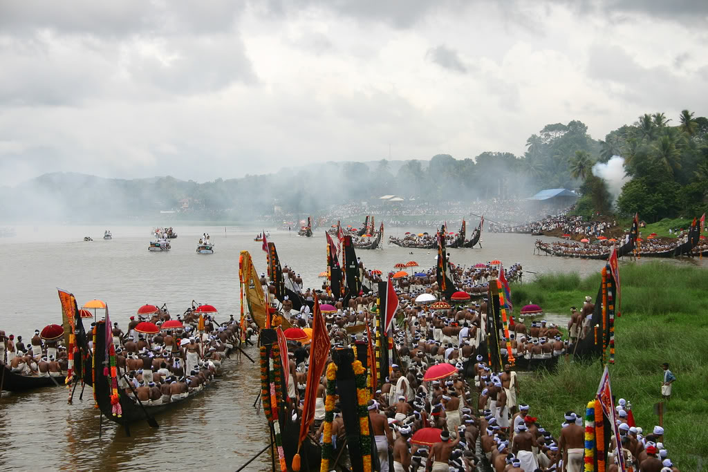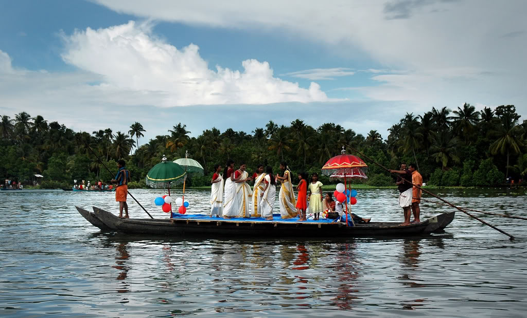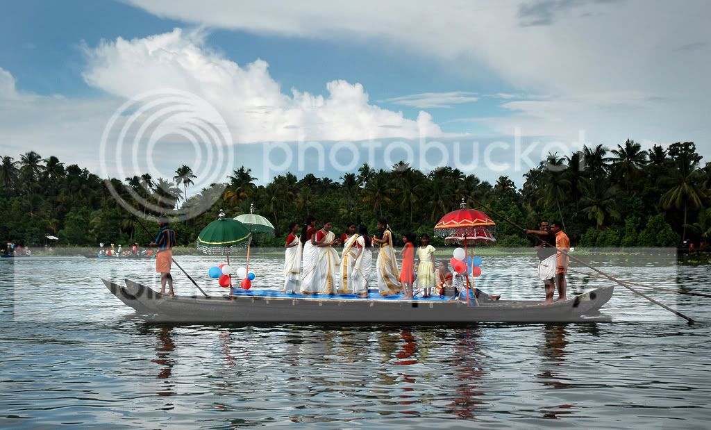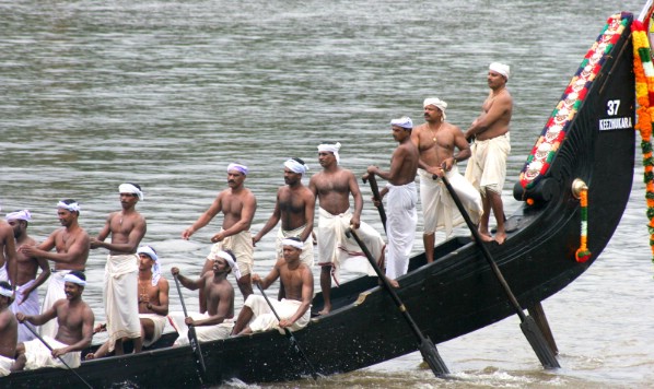 Usually they ride on a kerala style boat and few drummer are on board which encourage the rowers to row faster while they sing heroic tales from mythology.