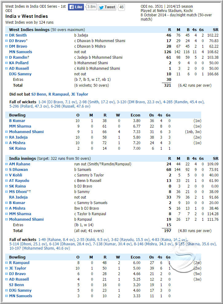 Re: India Vs West Indies ,1st ODI @Cochin,October 8