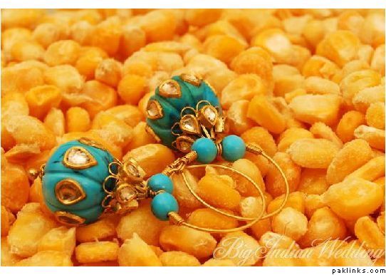 Mehendi – This has to be something colorful and fun. Usually this function is in the day and nothing looks better than a bright & vibrant piece of jewelry. One can wear a pair of chandelier earrings, which includes colored stones to match your outfit. Or a neckpiece which has colored stones in it, plain diamonds or just uncut diamonds is a big no no for this day.