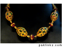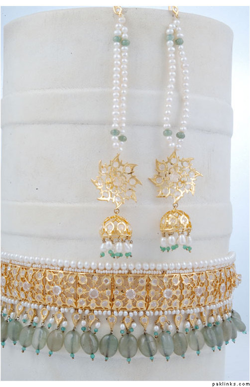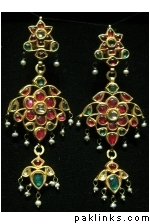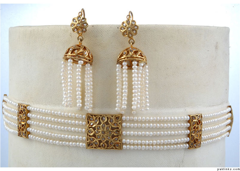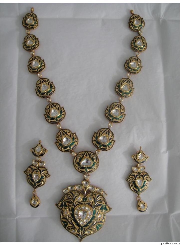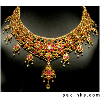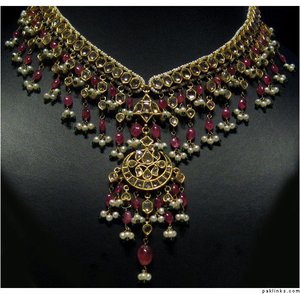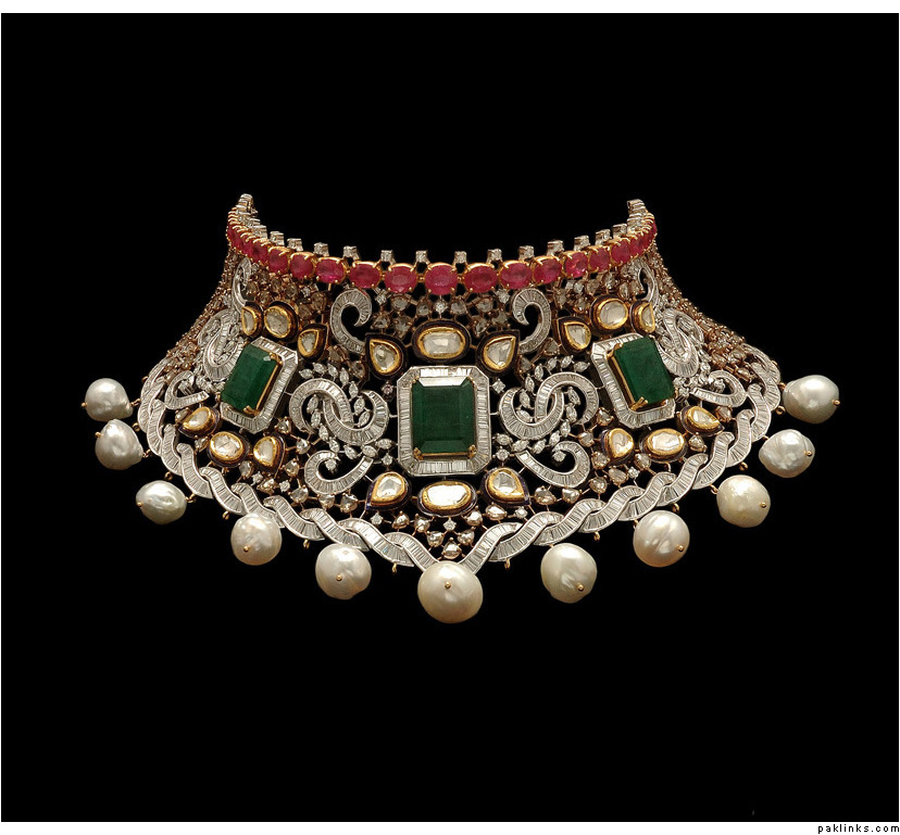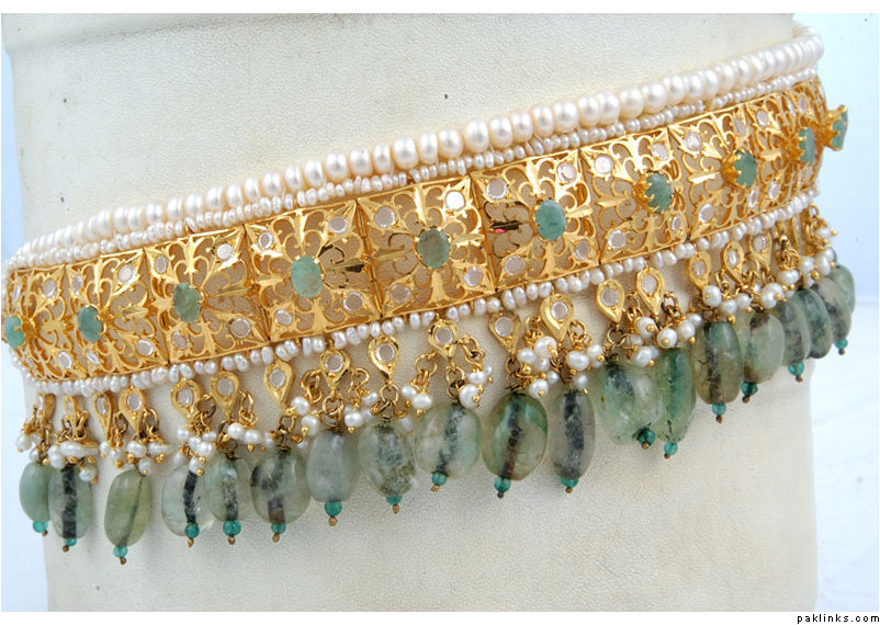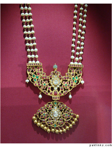 The above is a typical hyderabadi jewellery called as “hyderabadi laccha” or chokar style hyderabadi necklace. Is said to be a love of every muslim women and is believed that every muslim women minimum for 1 time is to wear that piece once in their life time. Design being the similar, the item is been passed from generation to the other simply like the customs and traditions are worn by almost all hyderabadi’s it creats itself a different brand in itself.
