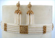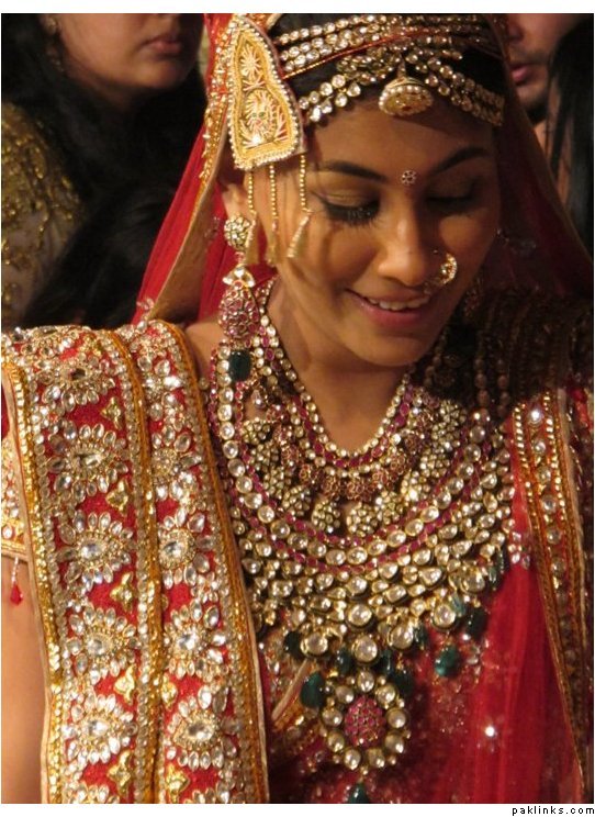 A bride wearing a beautiful uncut/ diamond ( polki )necklace.