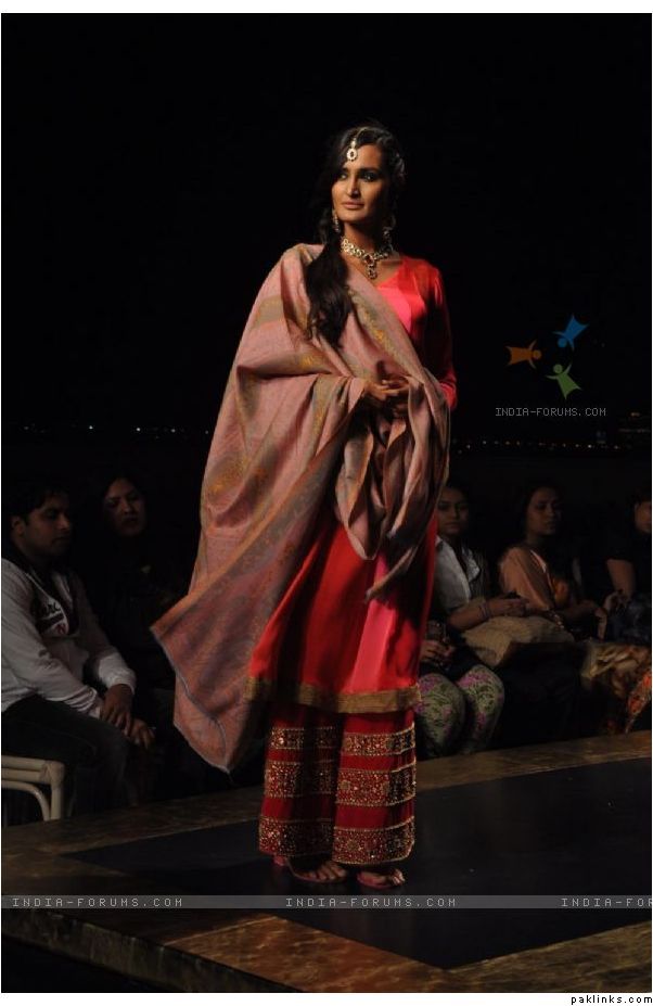 I really like the style of the embroidered pants, I saw Sonam with them in Sawaariya but now again they are back. Love them. Good collection.