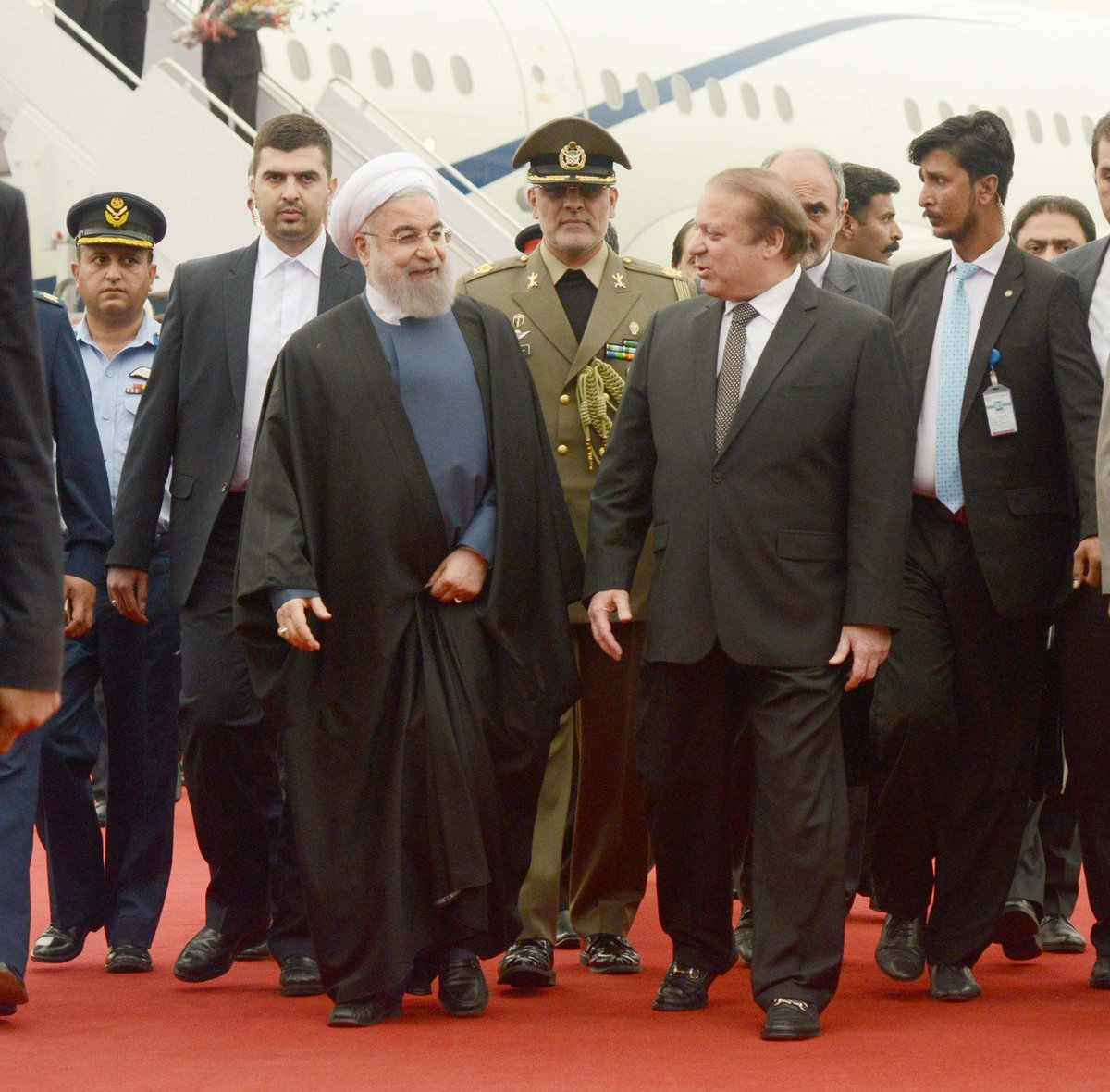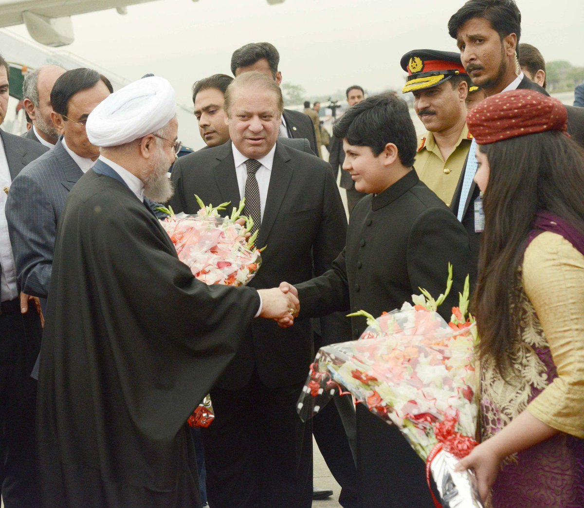 **President of Iran Mr. Hassan Rouhani has arrived at Nur Khan Airbase. PM Nawaz Sharif is receiving the President