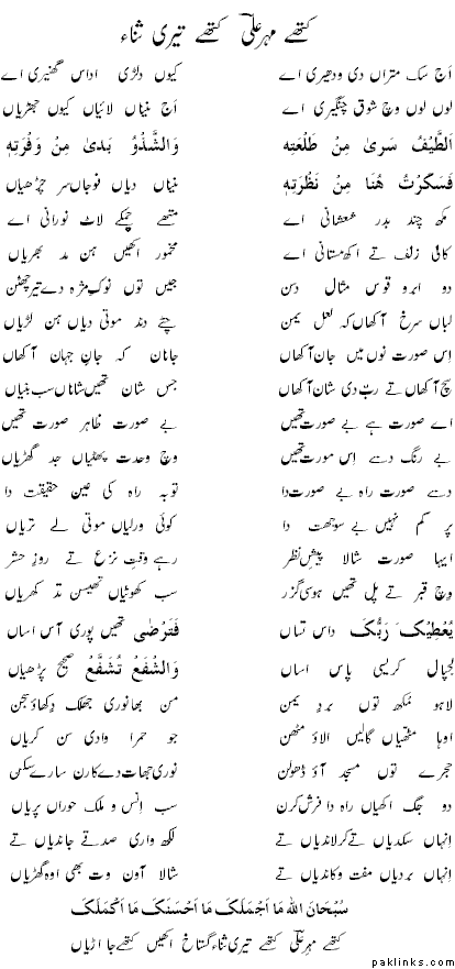 *Kithay Mehr Ali kithay teri sanaa