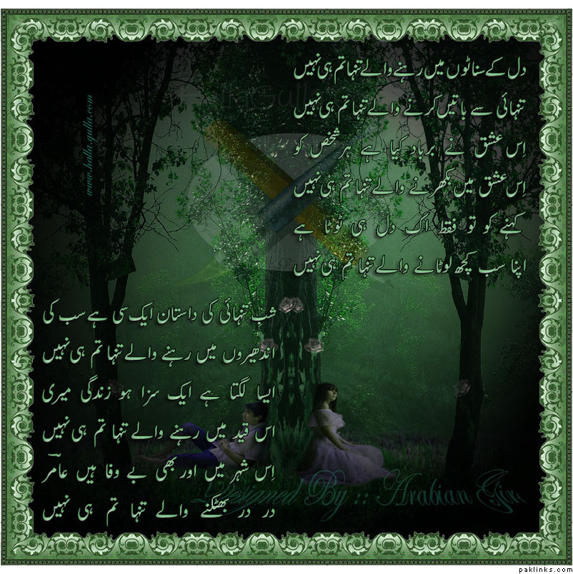 Tanhaee se batain karne walay tanha tum hi nahe
