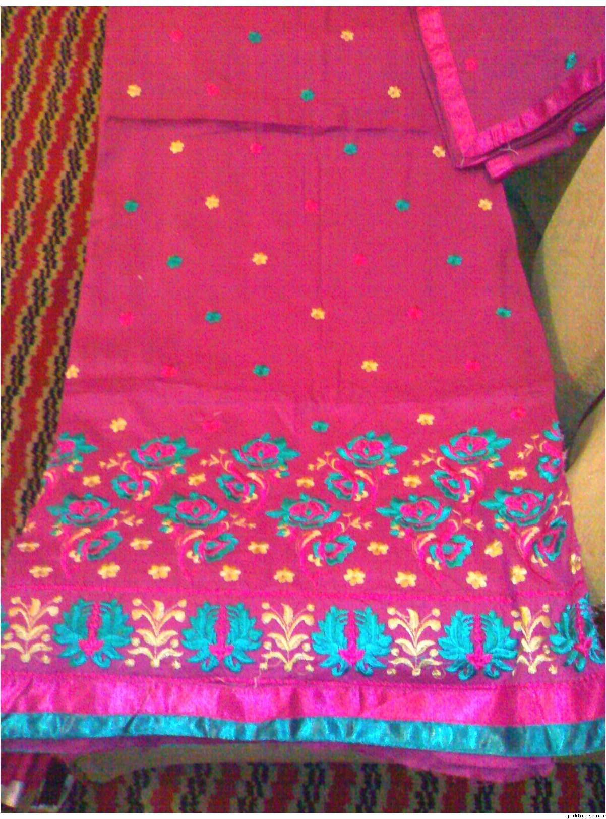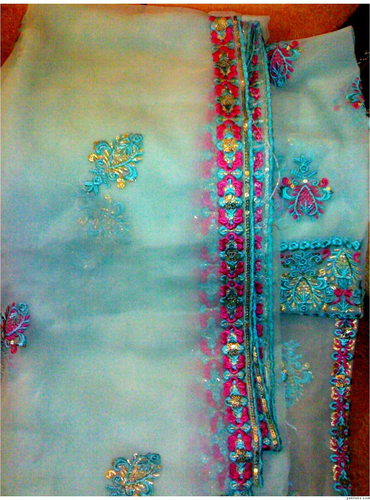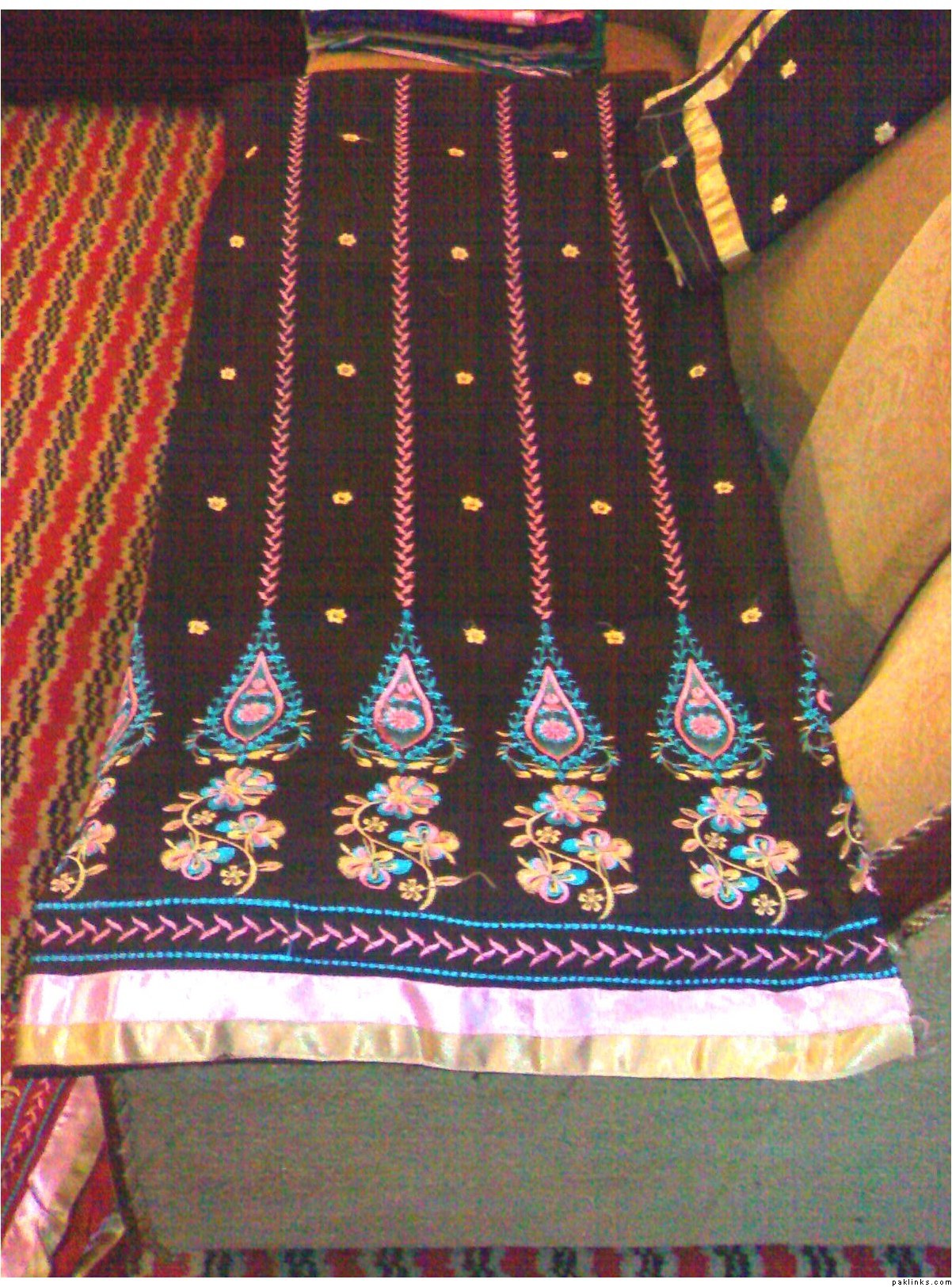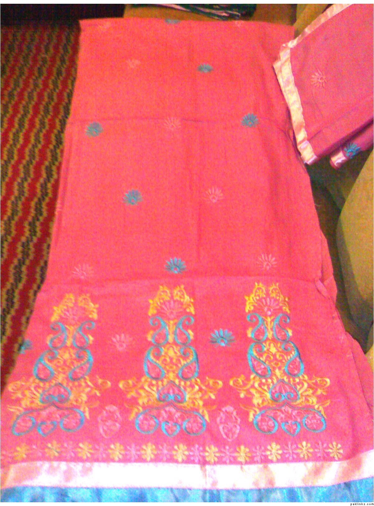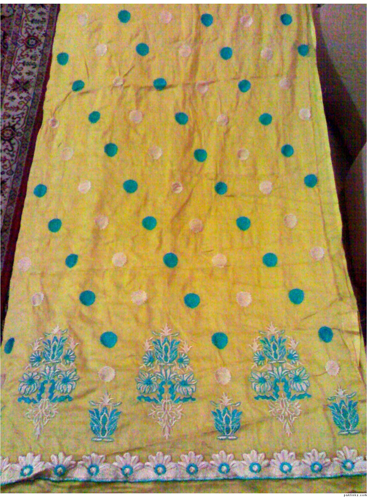 she has a wide range of unstitched embroidered formal/ casual dresses. formal stuff is based on indian Chiffon & silk while casual based on lawn and cotton both. her casual dresses are quite famous and hit among the young girls specifically. i can see her several clients in her vicinity around most of the time.