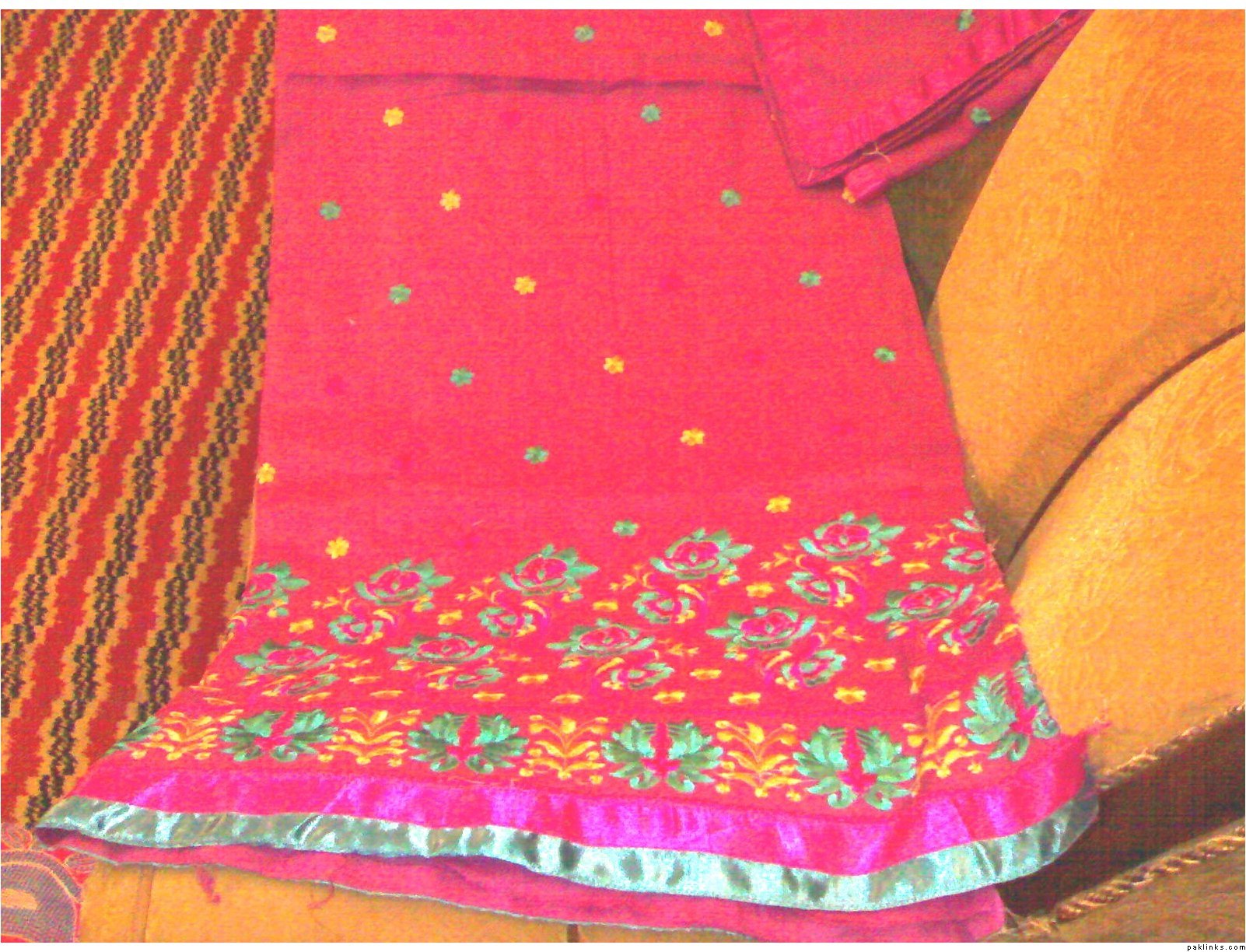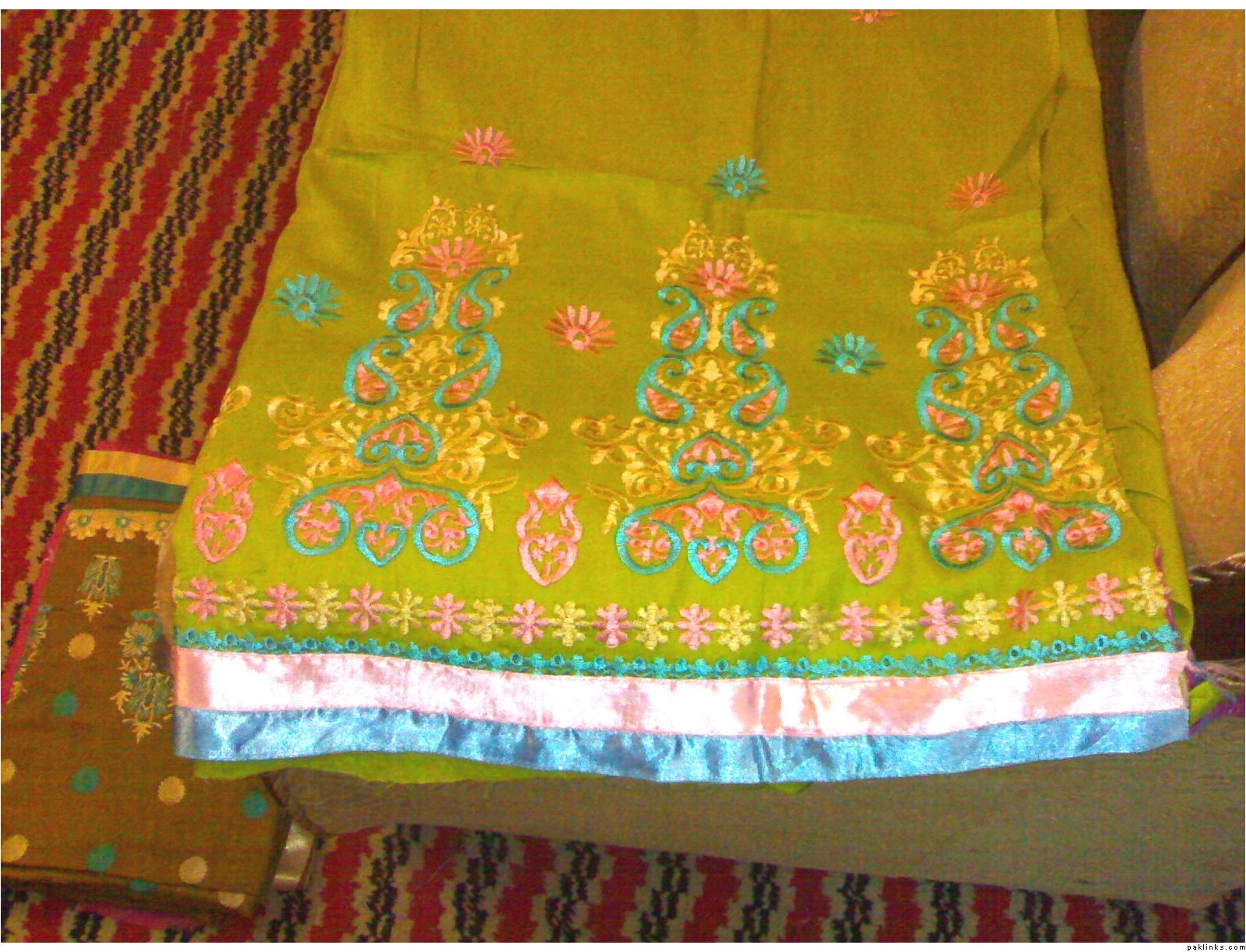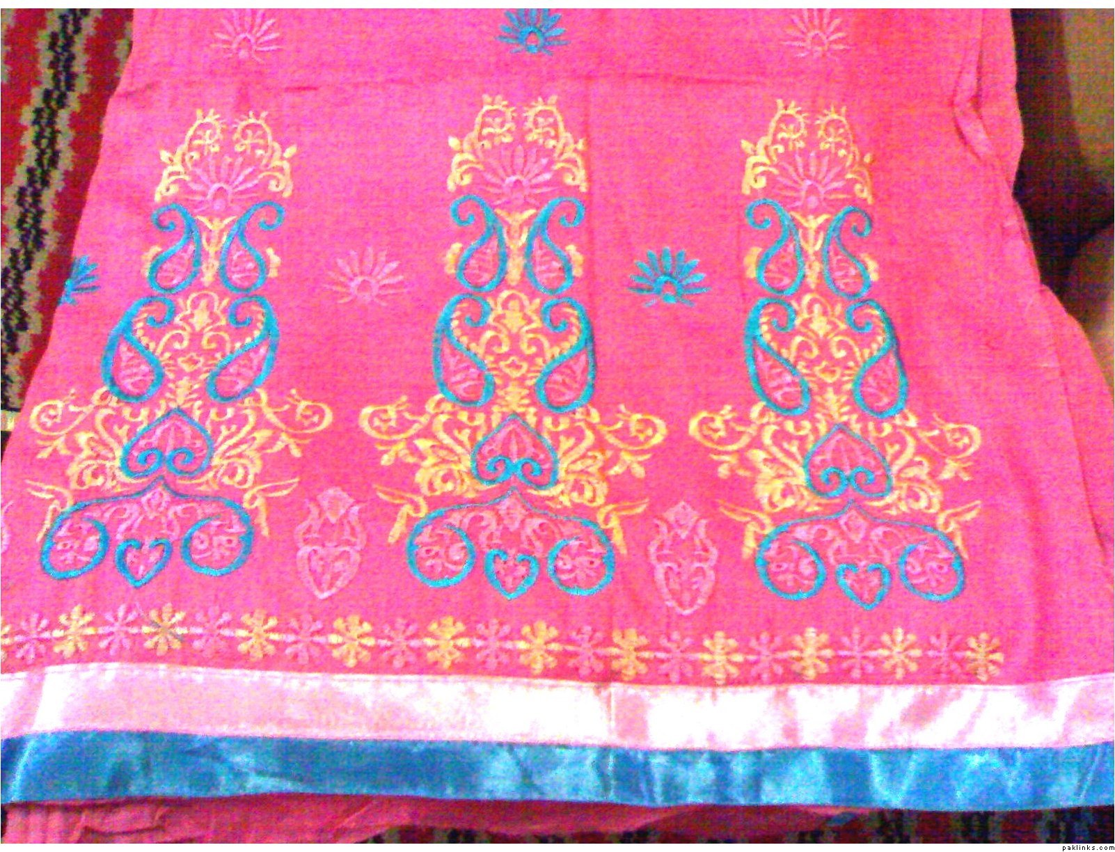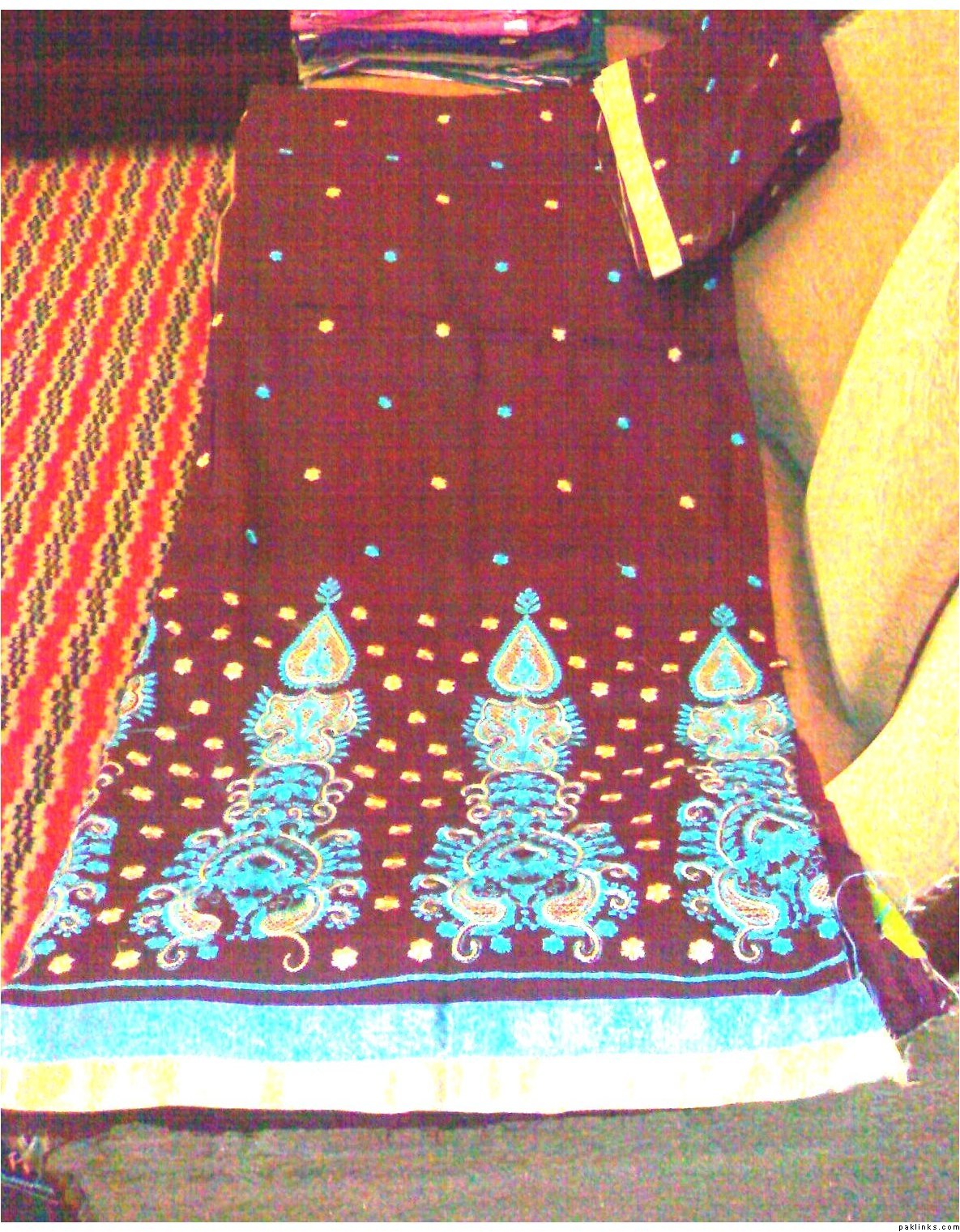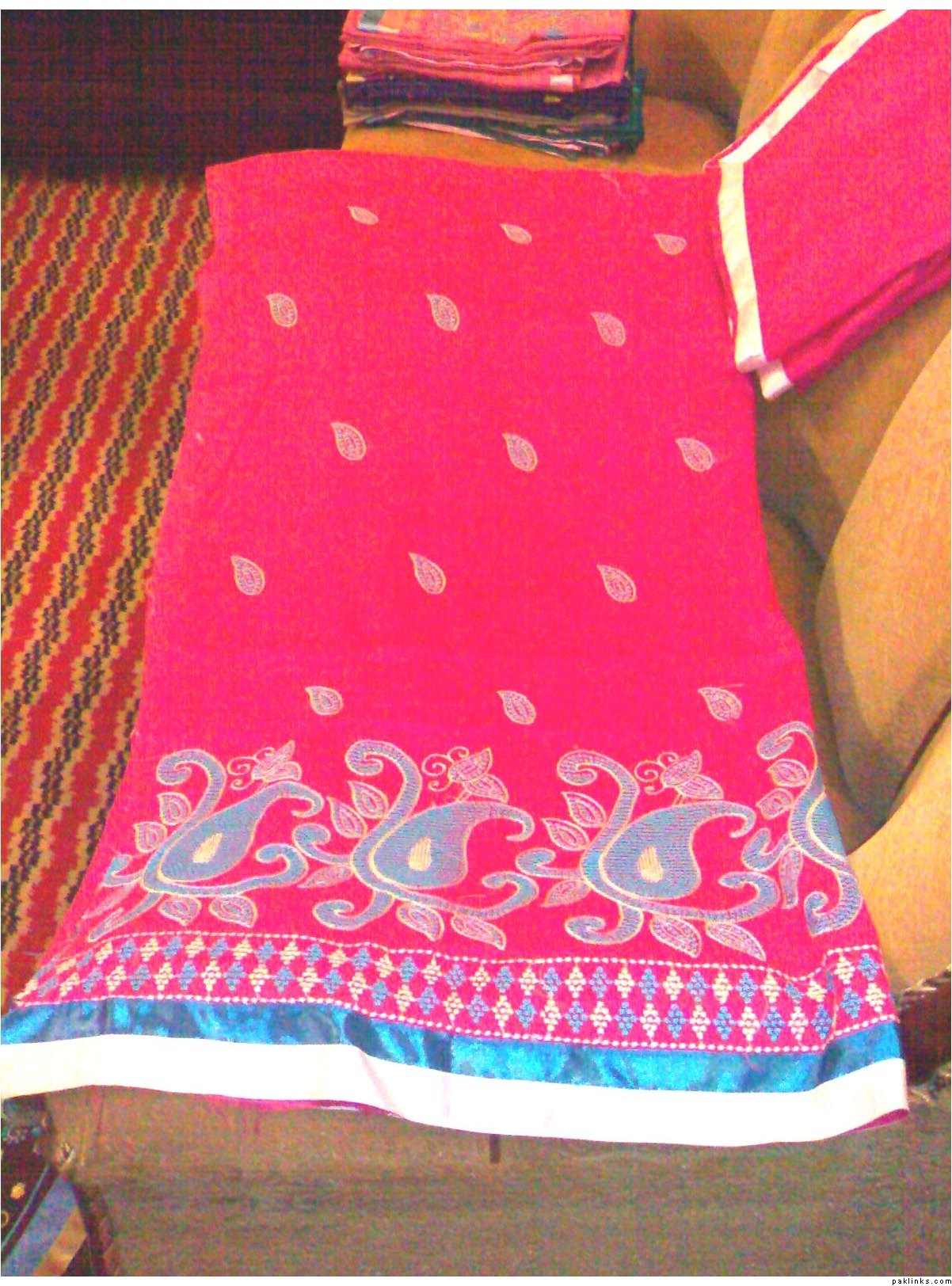 she has a wide range of unstitched embroidered formal/ casual dresses. formal stuff is based on indian Chiffon & silk while casual based on lawn and cotton both. her casual dresses are quite famous and hit among the young girls specifically. i can see her several clients in her vicinity around most of the time.