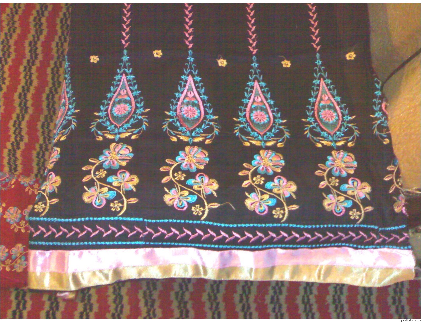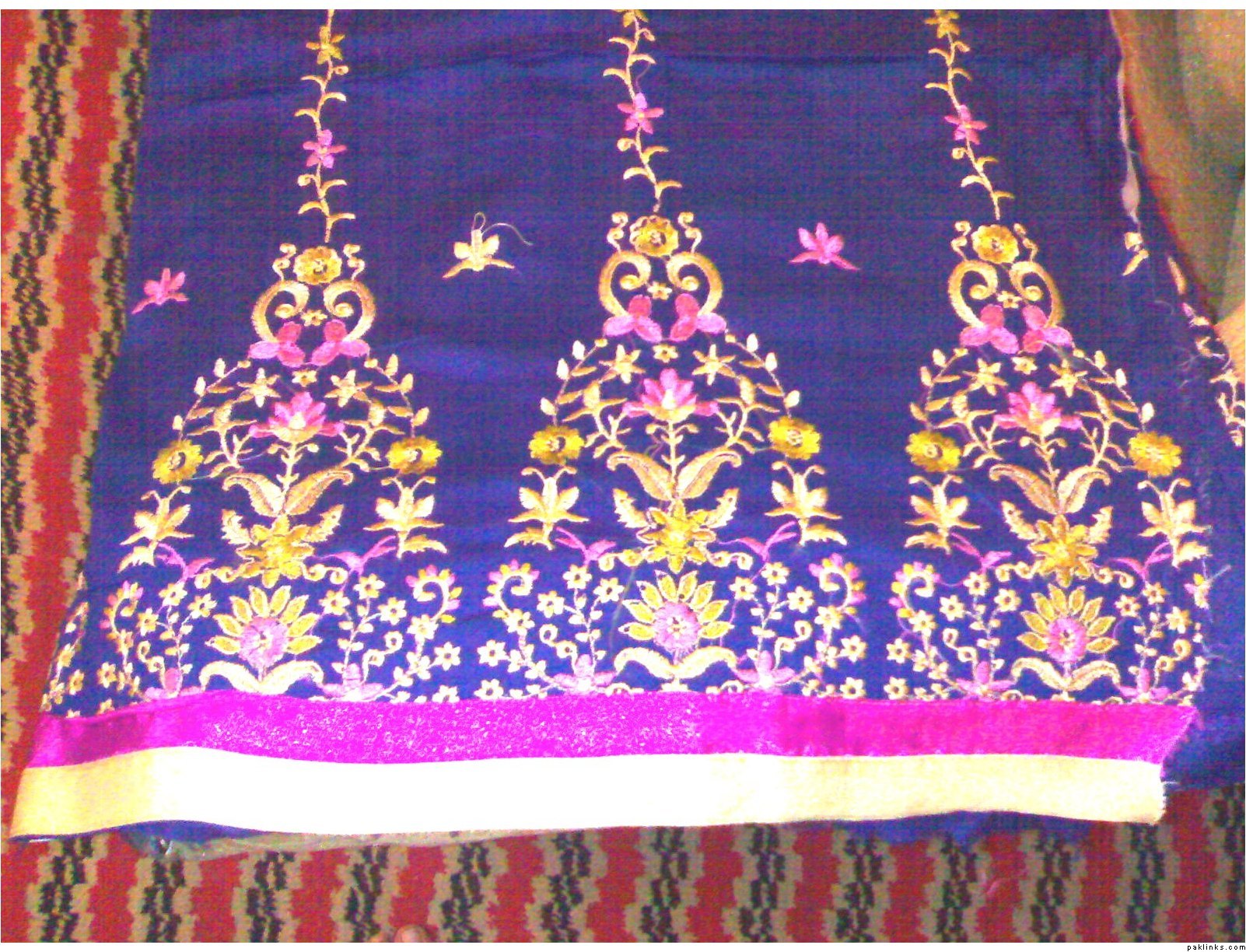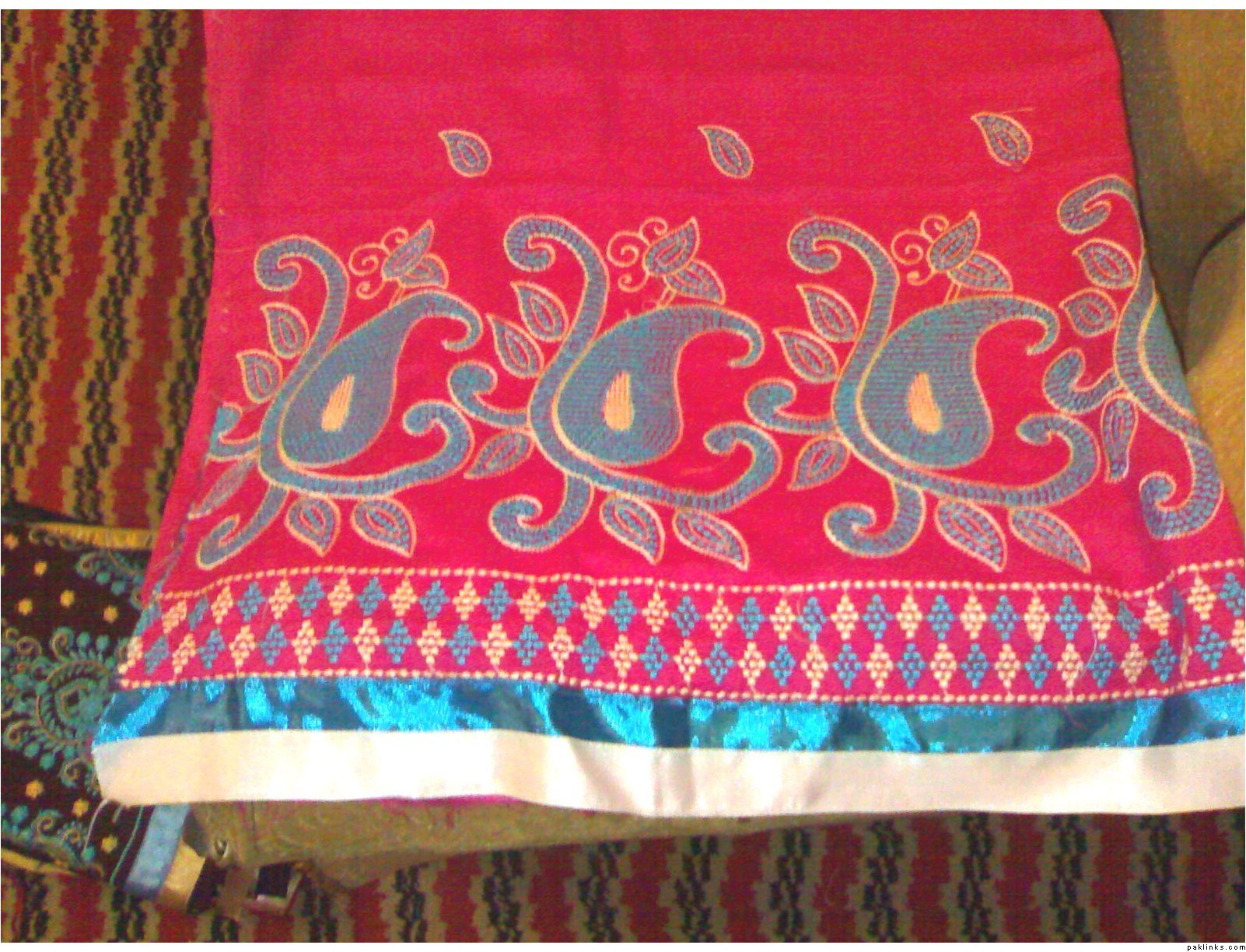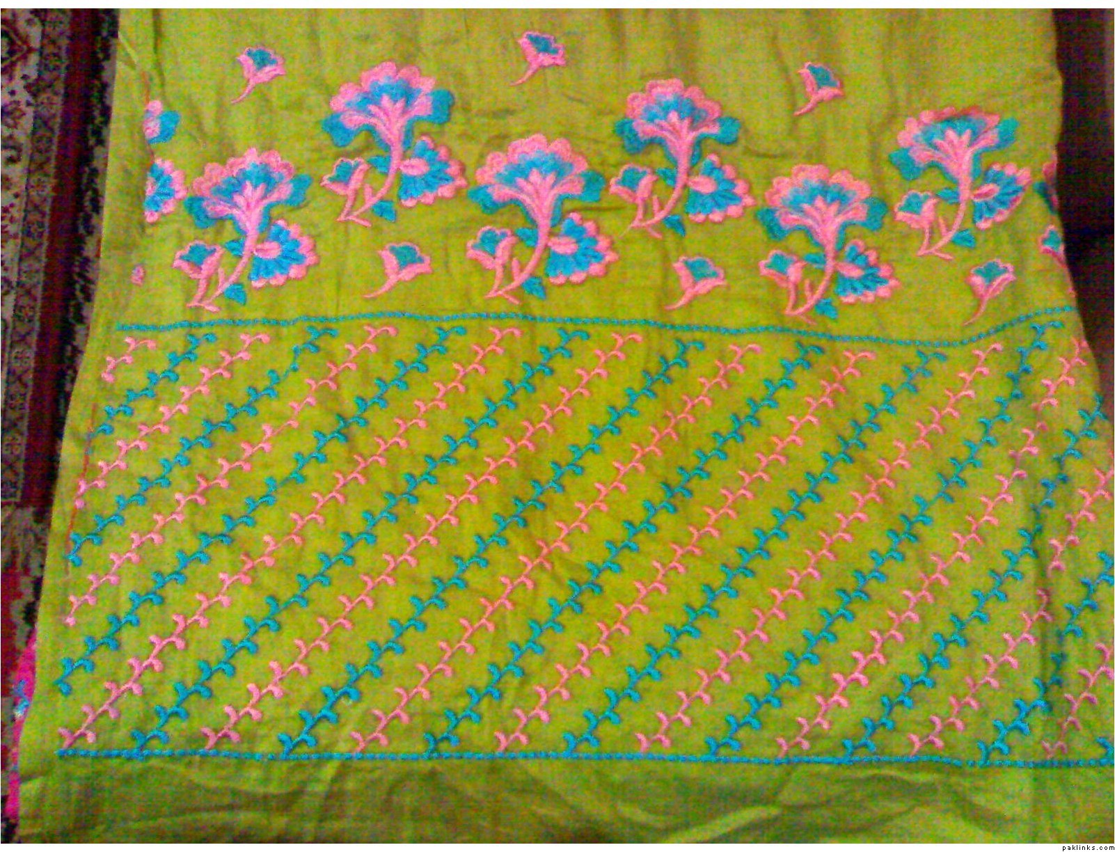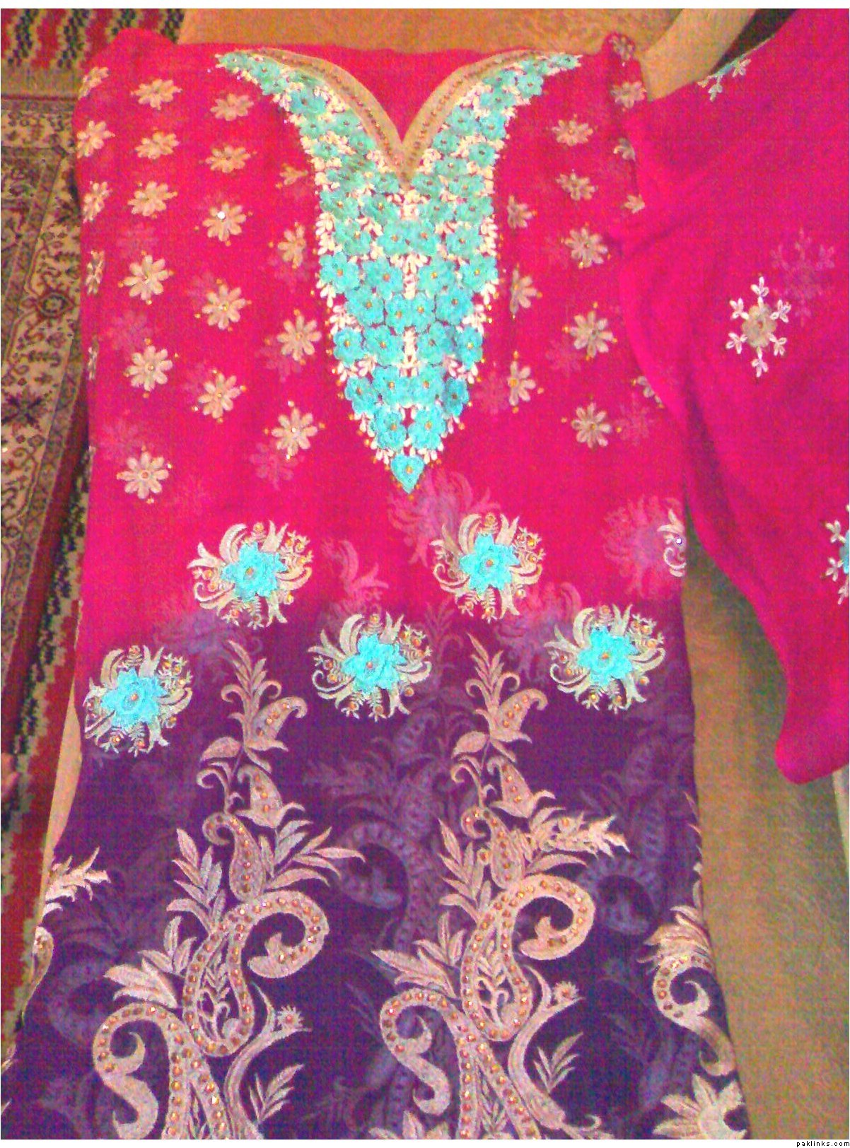she has a wide range of unstitched embroidered formal/ casual dresses. formal stuff is based on indian Chiffon & silk while casual based on lawn and cotton both. her casual dresses are quite famous and hit among the young girls specifically. i can see her several clients in her vicinity around most of the time.