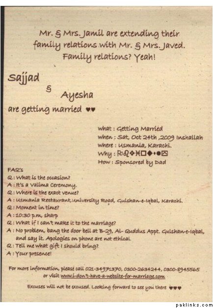 I remember seeing a invitation card have wordings like FAQs format. but I cant find it any more.