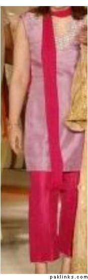 Here is a very unclear picture of a close up I tried to capture on my computer. There is light silver embroidery on the bottom of the kameez and dark pink threading on the bottom of the pants.