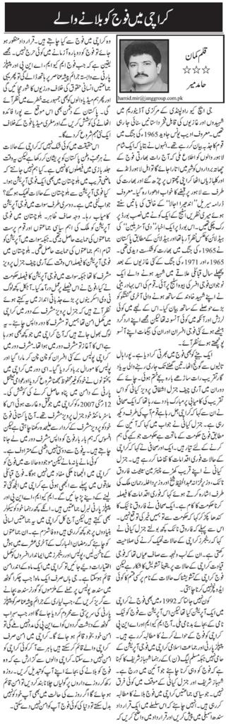 What is happening now is completely different: various civilian militias are being encouraged to snipe at the flanks and hit at vulnerable points. The ANP is part of this covert mobilisation, as are Lyari and other gangs, and even, if rumour is to be believed, remnants of the routed Haqiqi, the MQM’s splinter faction, once promoted by the ISI, the bare mention of whose name is enough to set the MQM on edge.