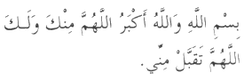 With the Name of Allah, Allah is the Most Great! [O Allah, from You and to You.] O Allah, accept it from me.