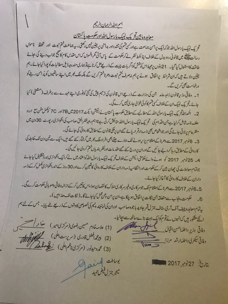 read the last part. pretty interesting…religious goons are saying that this whole agreement took place by efforts of COAS Bajwa and we are thankful to him. that says it all!