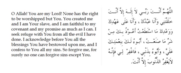 The Prophet added. “If somebody recites it during the day with firm faith in it, and dies on the same day before the evening, he will be from the people of Paradise; and if somebody recites it at night with firm faith in it, and dies before the morning, he will be from the people of Paradise.”Sahih Al-Bukhari – Book 75 Hadith 318