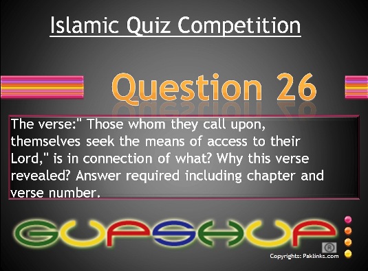 “Abdullah b. Mas’ud said in connection with the verse:" Those whom they call upon, themselves seek the means of access to their Lord," that that verse was revealed in connection with a party of Arabs who used to worship a group amnogst the jinn; the jinn embraced Islam but the people kept worshipping them without being conscious of it. Then this verse was revealed:" Those whom they call upon, themselves seek the means of access to their Lord.”