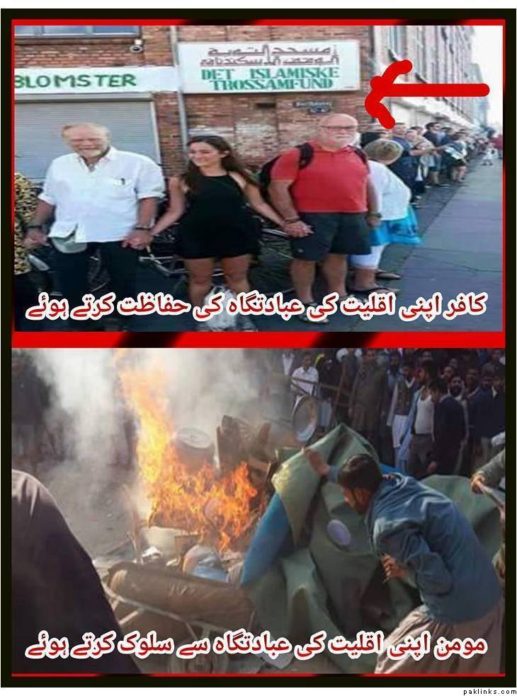 It would be easier to play the "those goons have nothing to do with me" card if there weren't horrible things happening in Muslim countries against minorities is my point. Its just easier when your not giving your enemies ammo to hurl at you... Another words, its easier for people to be convinced that I as an individual and we as a community are not a threat, if mobs of religious fanatics ARENT beating to death and then burning Christians in Pakistan.