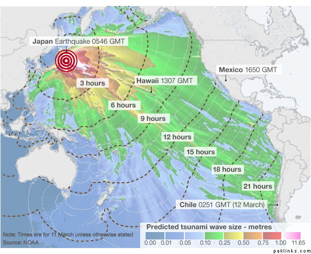 Japan earthquake: Wave forecast map
