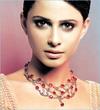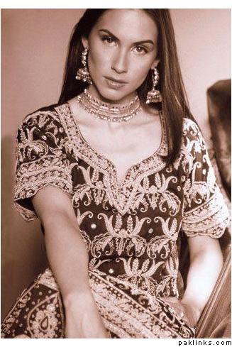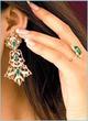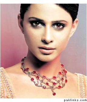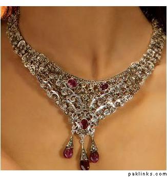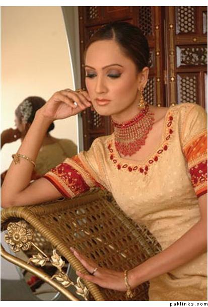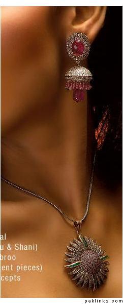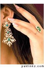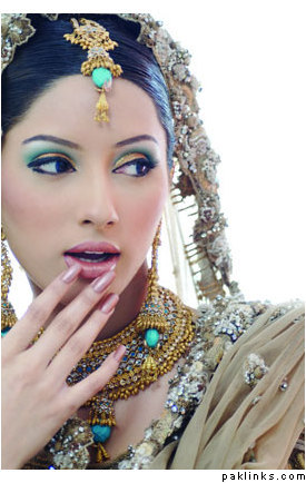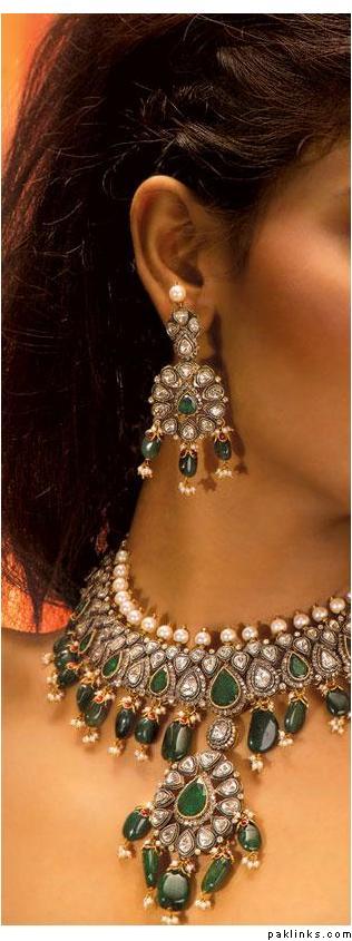 Nowadays, stones (both precious and semiprecious) are in as compared to solid gold jewelry. If you can match your jewelry to your outfit, that's always nice. People are wearing rather large earrings and one matching necklace. Sometimes, you'll see two necklaces on a bride, a choker and a matching guluband.