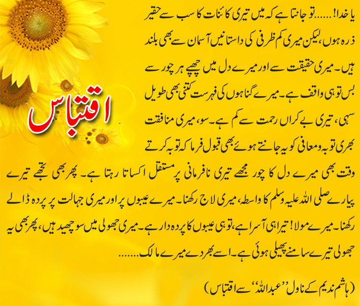 **(ہاشم ندیم کے ناول ’’عبداللہ‘‘ سے اقتباس)
