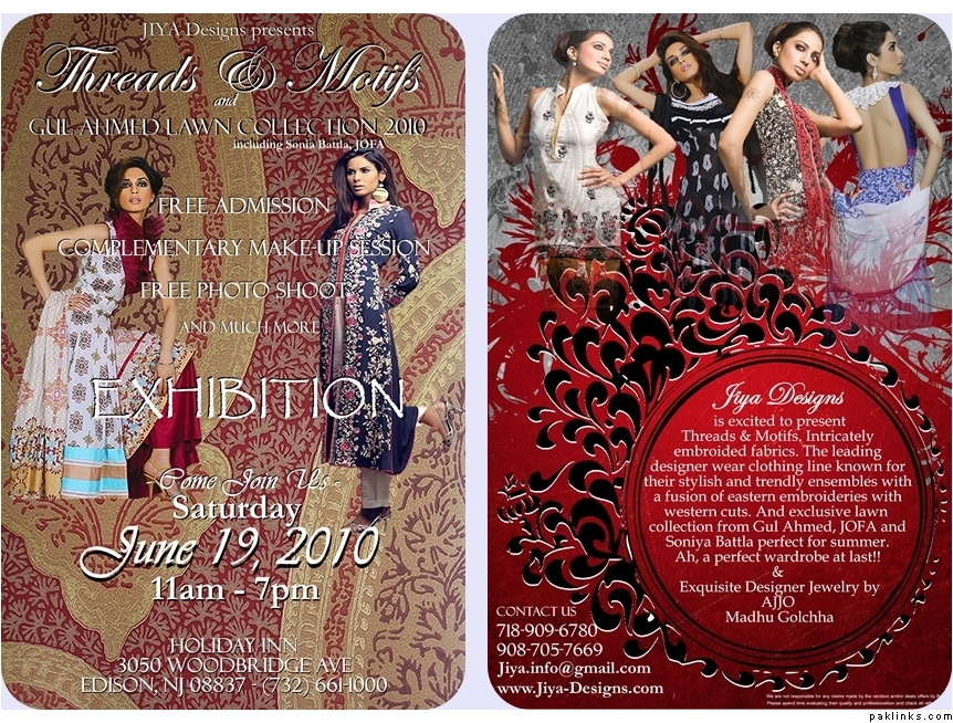This event will showcase collection from Threads and Motifs, Gul Ahmed Lawn and Jewelry by renowned designer Ajjo.**