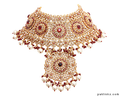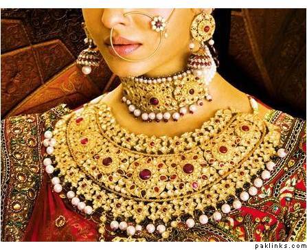 Tanishq has GORGEOUS stuff. They did all the jewellery for Jodha Akbar. They had a separate URL for these sets but it is not working now. BTW, the wedding set, which Aishwarya wore in the film, weighed around three-and-a-half kg. Does your cousin want gold sets or imitation ones?