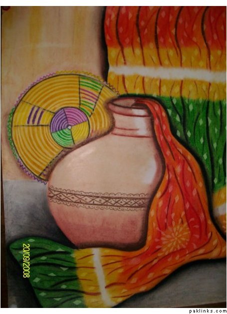 ya it was a still life. I understand ur point n it make sense also but working with oil pastel is really v difficult. they are actually the colored crayons kids use and I hv worked with them, it’s really v hard to create real life impressions esp if u working on textured material. Opposed to u I am actually amazed by the way she has dun the white boondi pattern on the chunri i.e I can’t figure out how she has dun it n she dun wanna share the trade secret ![]()
