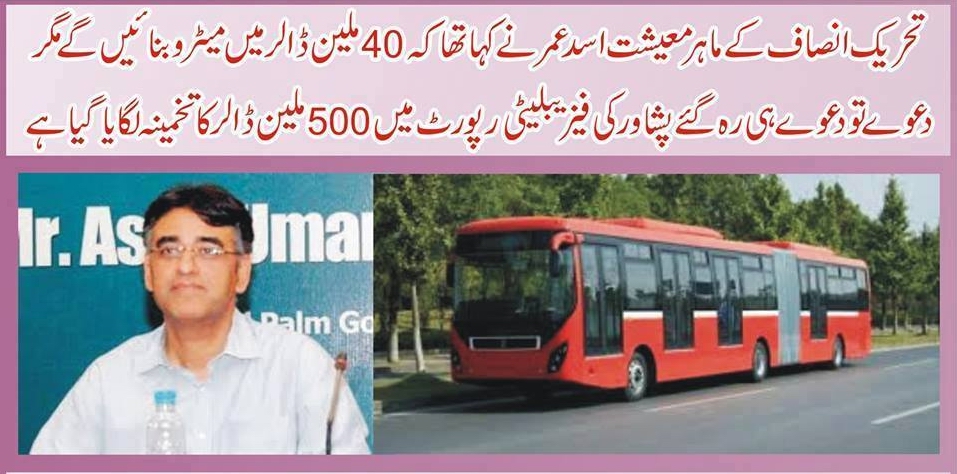 اگر میٹرو بس پشاور میں شروع کی گئی تو ہم سب سے پہلے اسکے خلاف کھڑے ہوں گے ۔ عمران خان