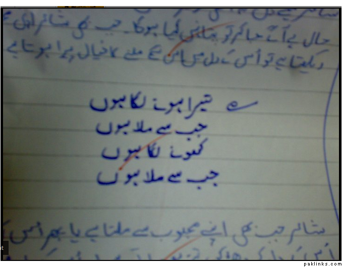 daykh aysay raahy ho jysa kahin tum nay ye khat likha ho matric kay emthan main ? ![]()