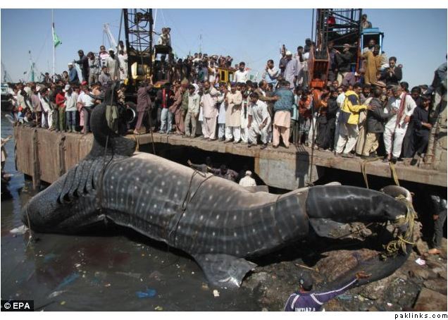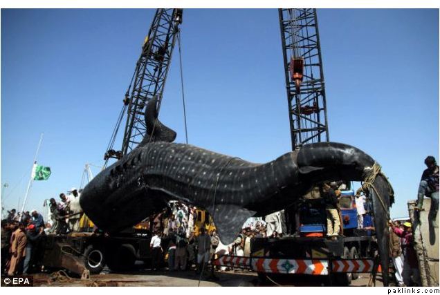 Try telling someone you caught this 40ft fish that’s as big as a whale - because they’re unlikely to believe you.But that’s exactly what a group of fishermen will be saying after landing this monster from the deep in the Arabian Sea.Pictures emerged today of the giant whale shark reeled in and brought to port in the Pakistani city of Karachi.