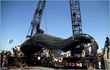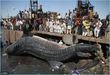 Two cranes were brought in to pull the eight ton shark’s carcass out. But that failed, so eventually another crane was brought in to complete the task.