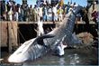 Crowds gathered to catch a glimpse of the beast - believed to be one of the biggest ever caught - as it was hauled out of the water at Charai Fishery.
