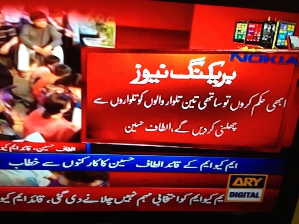 MQM has officially admitted to being a terrorist party. Shame on those who are listening to his crap. I hope he chokes on his spit.