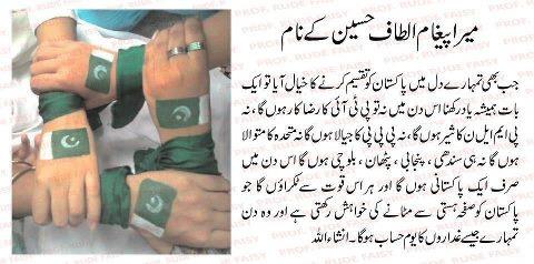 Re: Karachi ko Pakistan se Alag kardo- Altaf Hussain