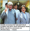 Sindh Governor Dr Ishratul Ibad in conversation with Sindh PPP chief Qaim Ali Shah.