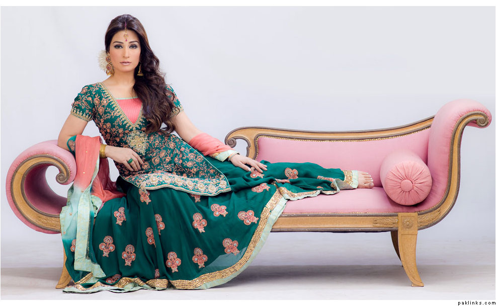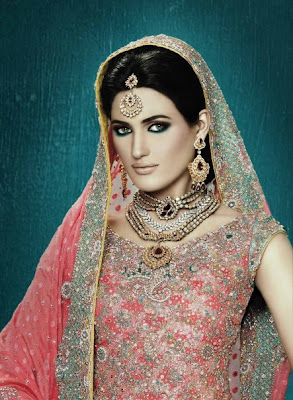 I only saw one bridal by them which Nadia Ali modeled. It was this pink one w/ polki jewelery by Shazia Deen. Absolutely gorgeous.