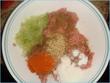 5- for the kebabs take about 250 gms of minced meat. Add your masalas. I added red chilli podwer, salt, a bit of chinese salt, crushed corriander seeds, some garam masala, a dash of ajwain and about 2 tbsps of desiccated coconut. Also add one small-medium onion ground with about 4 mirchi wali green pepper, the hot ones not mild ones.