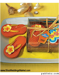 love the idea of handing out flip flops at a beach wedding, and conversely, for those cooler summer nights (for eg: in june or september), i've also seen baskets of lovely colored pashmina's for guests to wrap themselves up in.