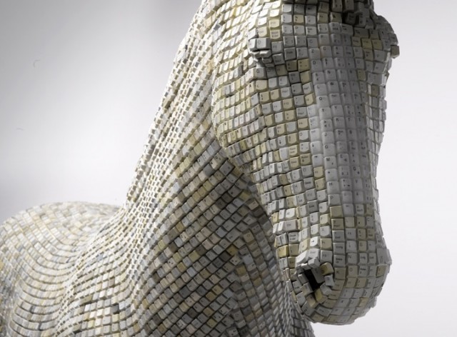 I’m not sure I fully understand the meaning behind this great sculpture made of resin and recycled computer keys by Babis Cloud, but I certainly enjoy looking at it. The piece is titled Hedonism(y) Trojaner, derived from the giant mythological Trojan horse built by the Greeks that was used to sneak an elite force of soldiers into the city of Troy under the charade of presenting the city with a gift.