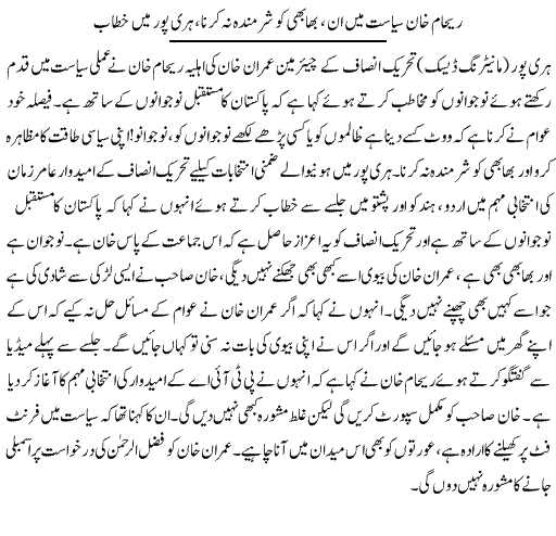 i have always supported reham khan but based on her recent activities, i am very disappointed. she has way too many political ambitions and in the mean process she will ruin PTI. There is nothing wrong in having political ambitions but if that is the sole reason she married imran, then she is using him to fulfill her own ambitions.